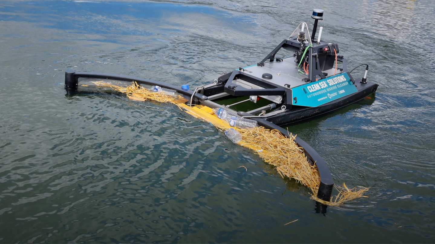 Aquadrone autonomously sweeps your waterfront for floating trash.
